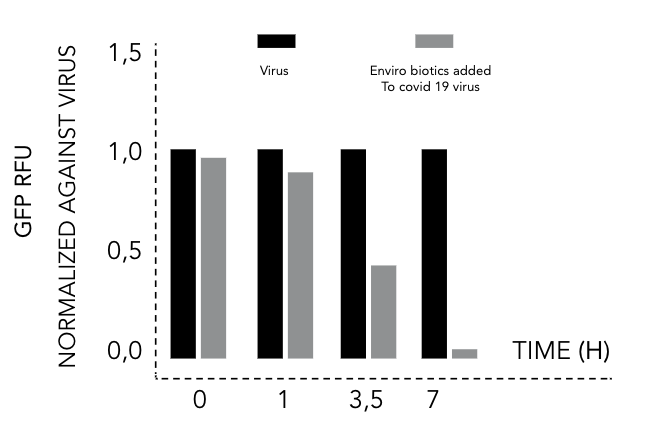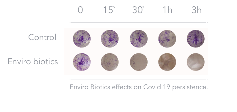 La Universidad de Génova, en Italia, examinó el  efecto de los Enviro-Biotics® sobre los virus corona que se encuentran en superficies y objetos, y descubrió que la proteína Spike (la proteína responsable de reconocer el receptor en las células humanas, fusionar las membranas e insertar el ARN-m en las células) es muy vulnerable a las proteasas producidas por los Enviro-Biotics®. Se comprobó que después de 15 minutos de exposición, el 70% de los virus de la corona estaban desactivados. La exposición continuada durante 3 horas redujo la tasa de virus activos en un 98%.